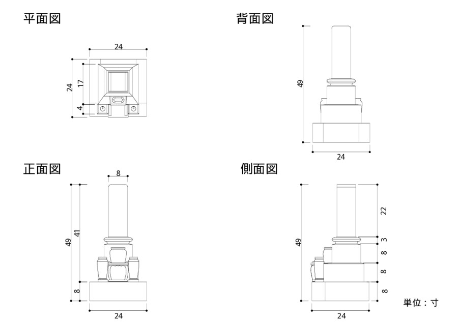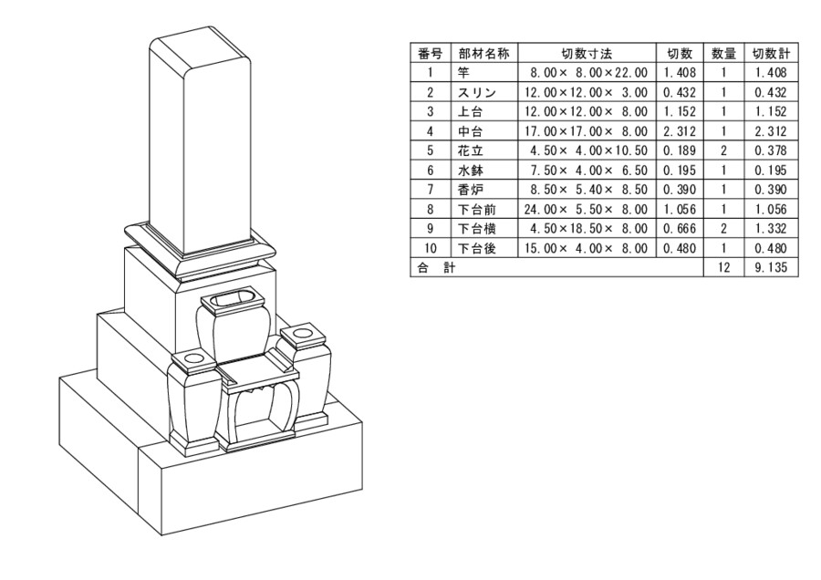 紀山 石塔 8寸角 名古屋型 スリン付 (中国加工)