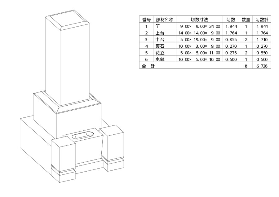 磐梯みかげ 石塔 9寸角 静岡型 B加工