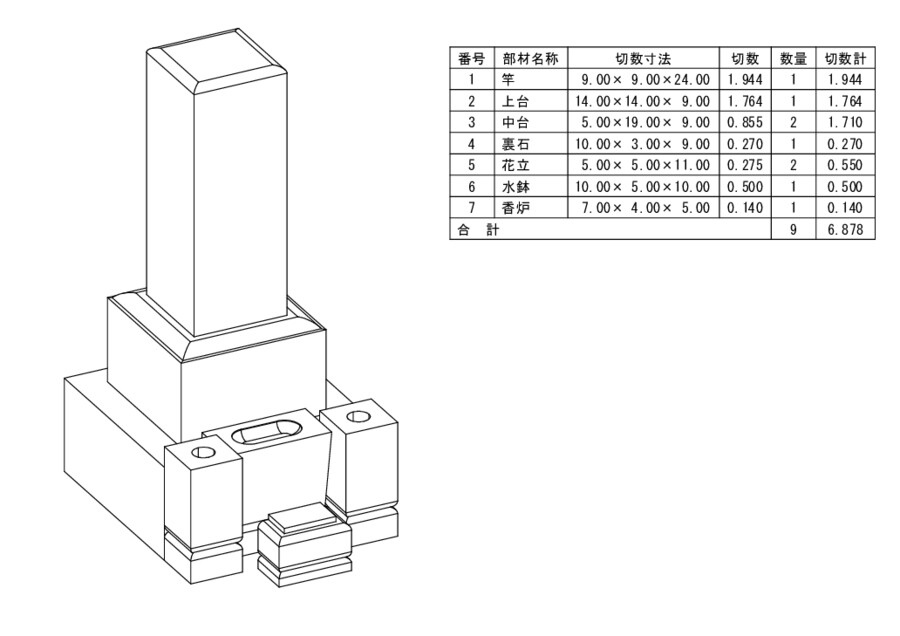 滝根(荒目濃手)石塔 9寸角 静岡型 B加工