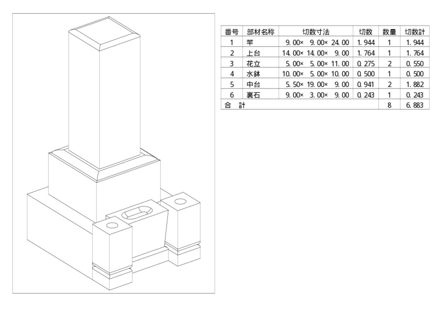庵治中細目 石塔 9寸角 静岡型 A加工