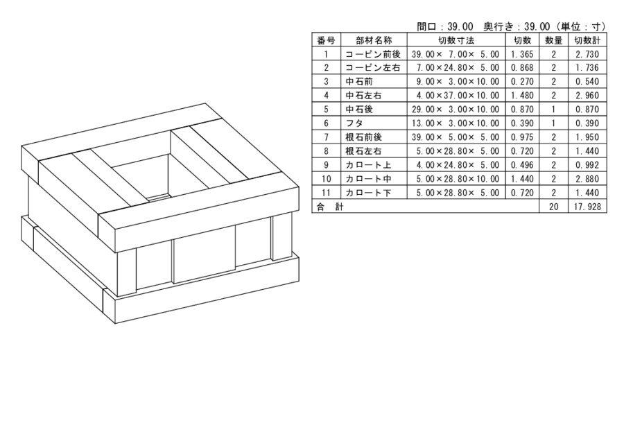 浮金(2級)ガンザ 磨き外柵 39x39x20寸 カロート付きです。