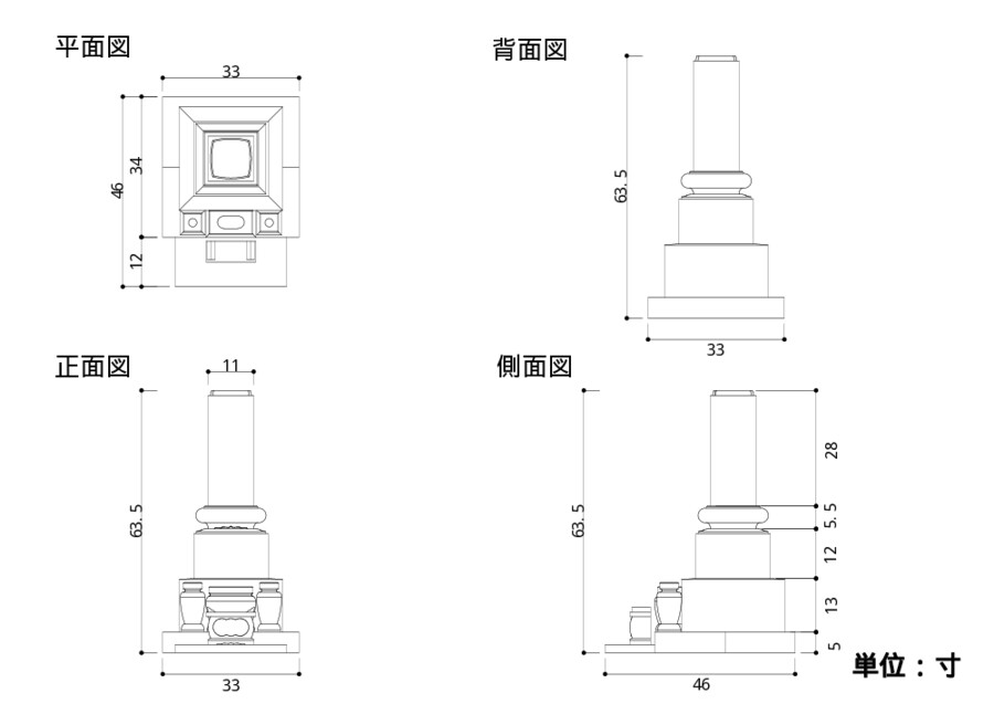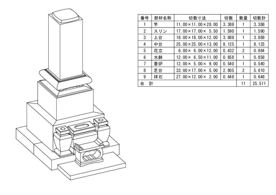 高萩みかげ 石塔 11寸角 一枚台 DX型 スリン 芝台付