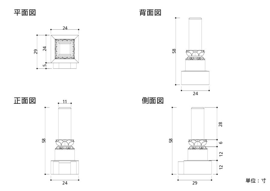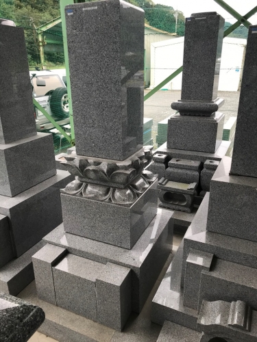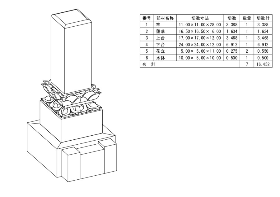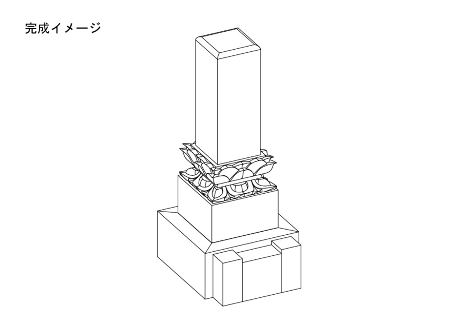 岩代みかげ 石塔 11寸角 一枚台 上下蓮華 芝台付