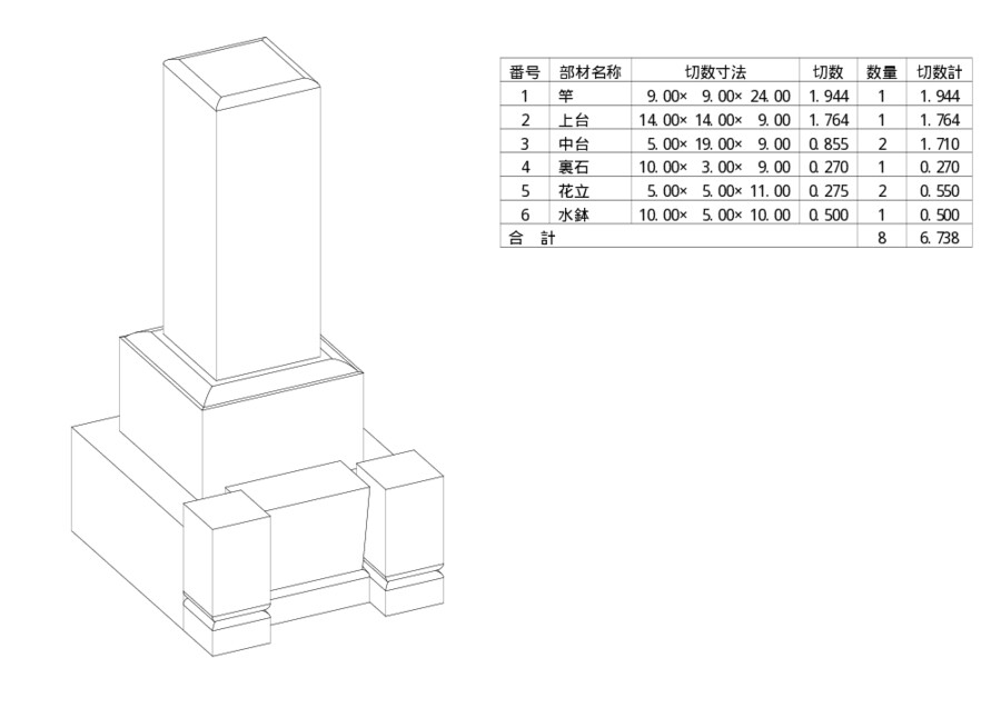 まさむねの御影 石塔 9寸角 静岡型 B加工 (国内加工)